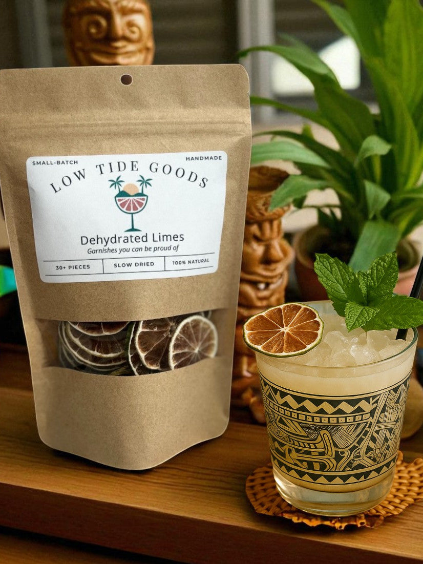 Low Tide Goods was born out of snowy Midwest winters and a love for the ritual of a well-made drink. On cold nights in Wisconsin, mixing a tropical cocktail became our favorite escape; a brief trip to the coast without leaving the kitchen. Over time, what started as a personal hobby turned into a passion for sharing beautiful, handcrafted garnishes with others.